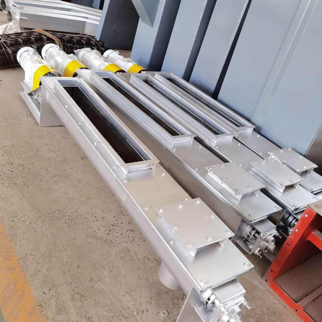 螺旋輸送機(jī)的運(yùn)行原理是通過螺旋軸的轉(zhuǎn)動(dòng),把物料在葉片推力的作用下沿著輸送機(jī)的機(jī)體向前移動(dòng)。物料在中間軸承的運(yùn)移,則是依靠后面前進(jìn)著的物料的推力。所以,物料在輸送機(jī)中的運(yùn)送,完全是一種滑移運(yùn)動(dòng)。一般我們設(shè)計(jì)的螺旋輸送機(jī)的進(jìn)料口與輸送機(jī)的驅(qū)動(dòng)裝置在同一方向,便于推動(dòng)物料,使輸送機(jī)的動(dòng)力減輕。葉片的面型根據(jù)輸送物料的不同有實(shí)體面型、帶式面型、葉片面型等型式。螺旋輸送機(jī)的螺旋軸在物料運(yùn)動(dòng)方向的終端有止推軸承以隨物料給螺旋的軸向反力,在機(jī)長較長時(shí),應(yīng)加中間吊掛軸承,以免因?yàn)槁菪S和葉片過長,加上自身重力時(shí)間長了,出現(xiàn)同心度偏差問題。我們設(shè)計(jì)的輸送機(jī)可以根據(jù)客戶的要求做進(jìn)出料口的方向,數(shù)量,及螺旋葉片的旋向。