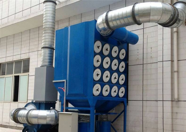 濾筒的工作原理與普通的布袋除塵器是一樣的。含塵氣體進入除塵器灰斗后,由于氣流斷面突然擴大及氣流分布板作用,氣流中一部分粗大顆粒在動和慣性力作用下沉降在灰斗;粒度細、密度小的塵粒進入濾塵室后,通過布朗擴散和篩濾等組合效應,使粉塵沉積在濾料表面上,凈化后的氣體進入凈氣室由排氣管經風機排出。