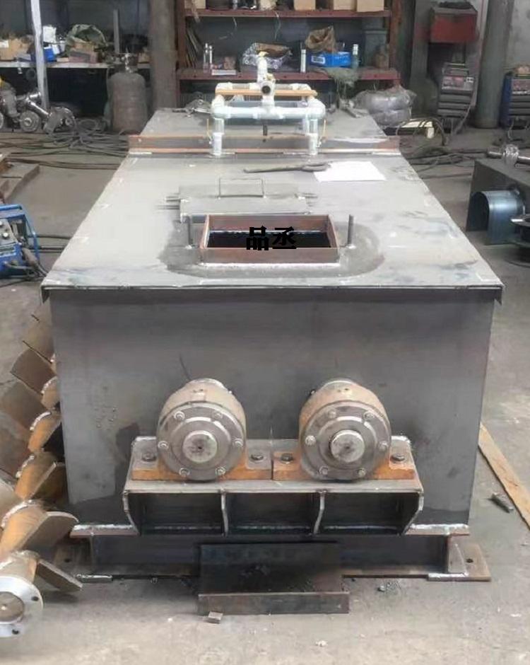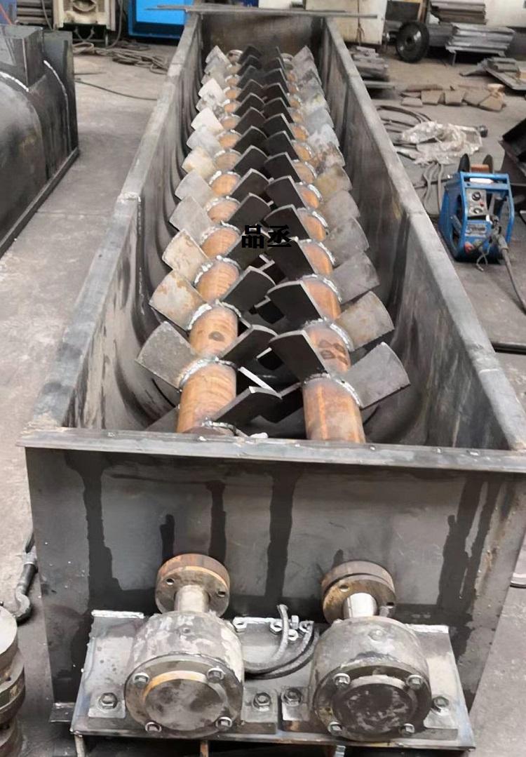 粉塵加濕機(jī)的運(yùn)行方式是由星型卸料器均勻供料過入主機(jī),物料在設(shè)備輸送過程中可對能過攪拌葉片或者攪拌棒對物料進(jìn)行均勻攪拌,由給水裝置定量供給的水進(jìn)行強(qiáng)制混合、攪拌,同時將符合濕度要求的物料輸送至出料口排出,達(dá)到消除揚(yáng)塵的目的