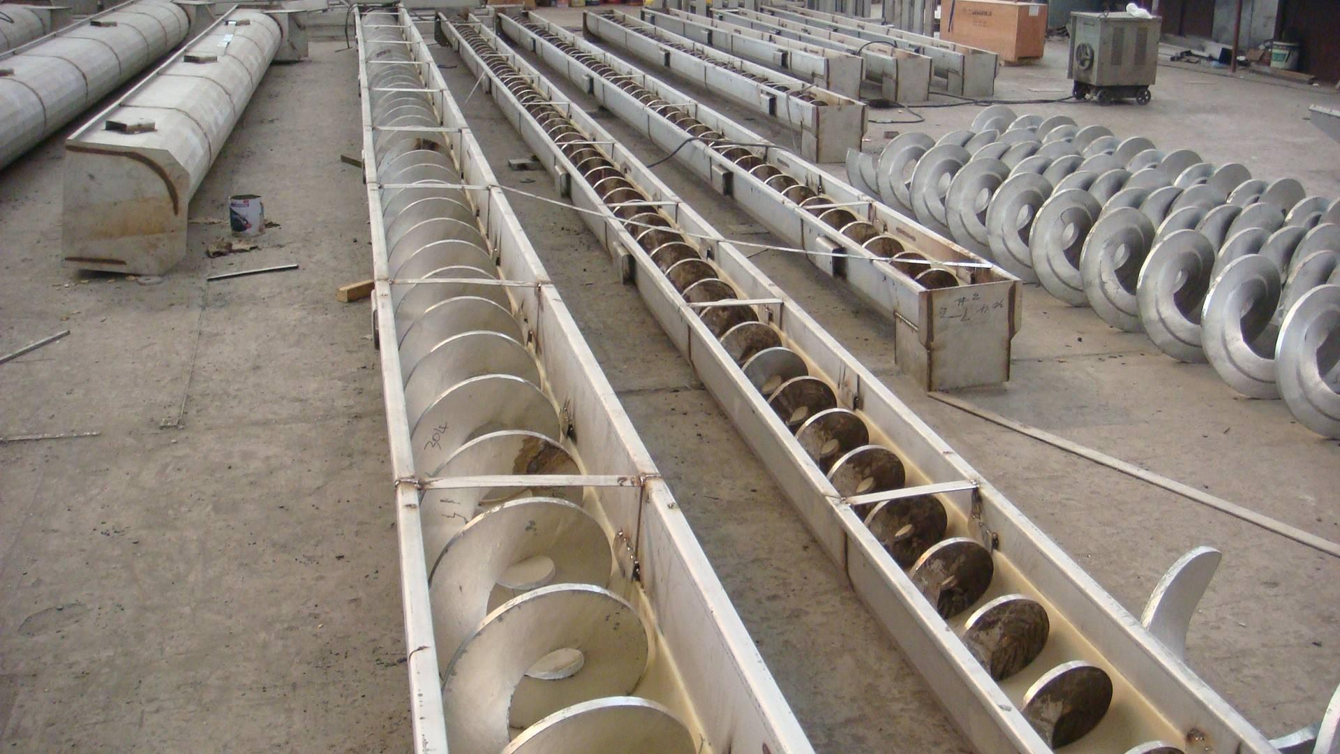 河北品丞雙無軸螺旋輸送機是螺旋數控及分雙螺旋和單螺旋同樣轉速下,雙螺旋葉片的輸送流量比單螺旋葉片大,因為雙螺旋葉片的導程角(或稱螺旋角)比單螺旋葉片高。換言之,同是旋轉一周,雙螺旋葉片的輸送量比單螺旋葉片大。